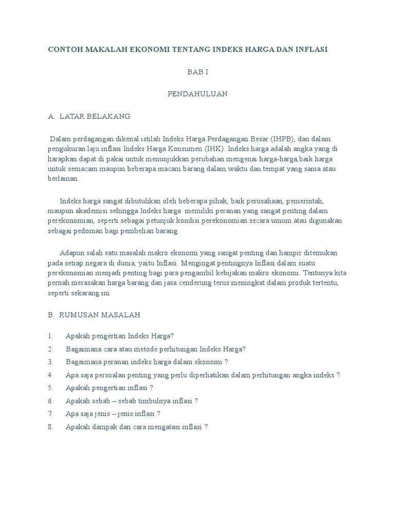 Contoh Makalah Ekonomi Tentang Indeks Harga Dan Inflasi
