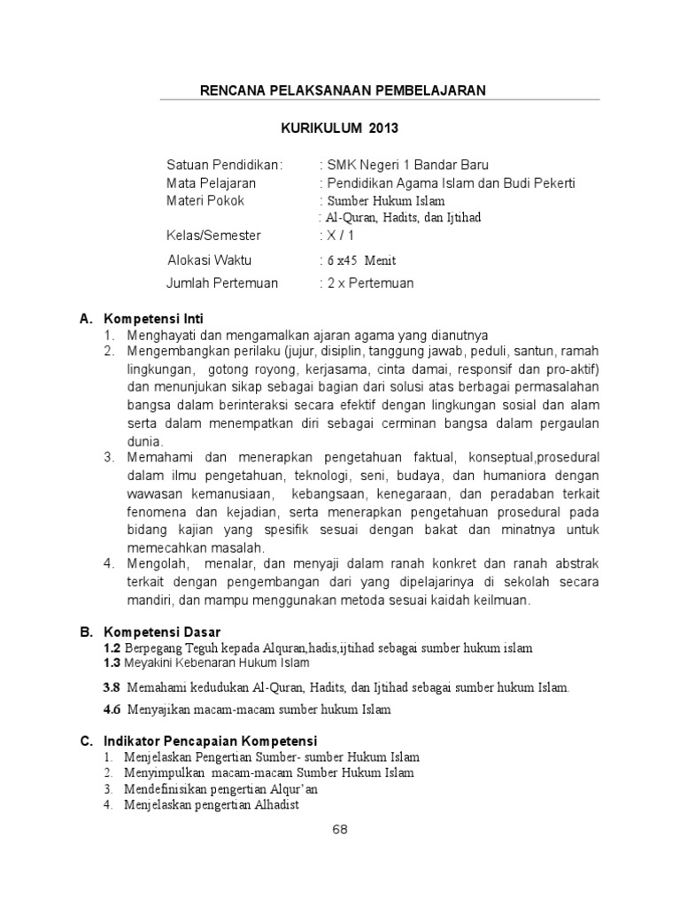 RPP K13 SD SMP SMA SMK revisi rpp.paiX.5SMK