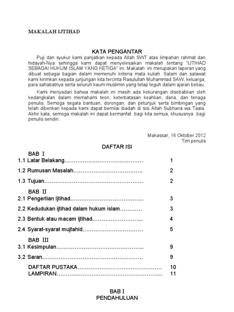 Contoh Makalah Ijtihad Sebagai Sumber Hukum Islam