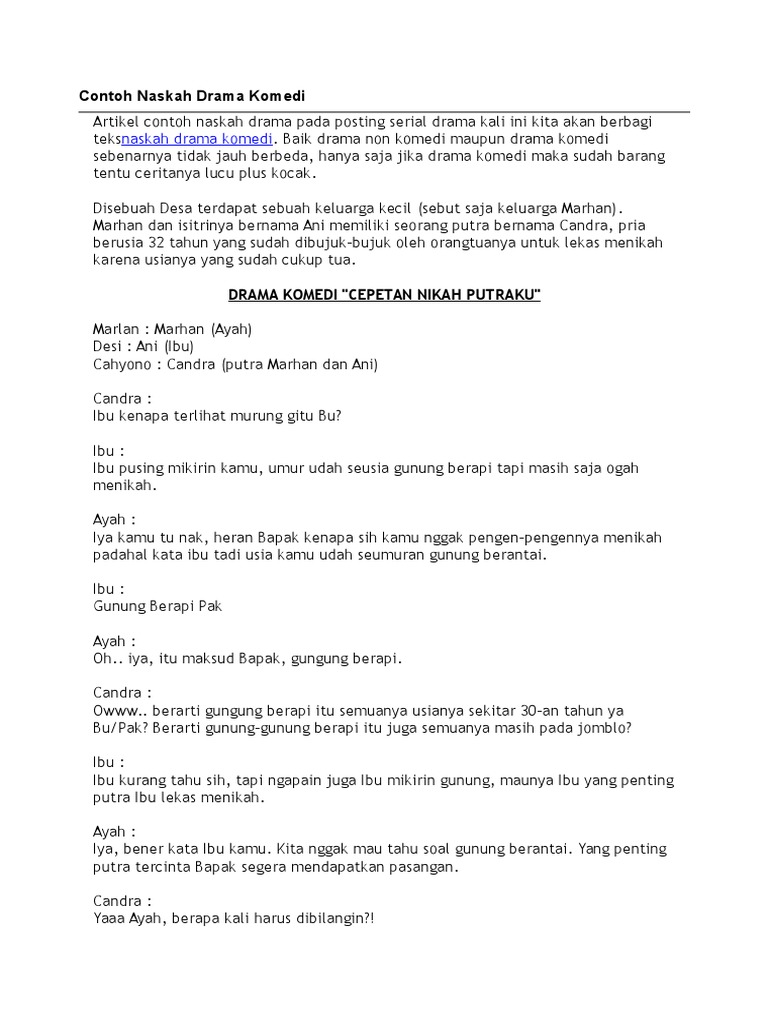 Contoh Naskah Drama Komedi Untuk 2 Orang Pada kesempatan …