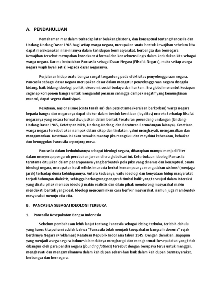 A. Pendahuluan: B. Pancasila Sebagai Ideologi Terbuka