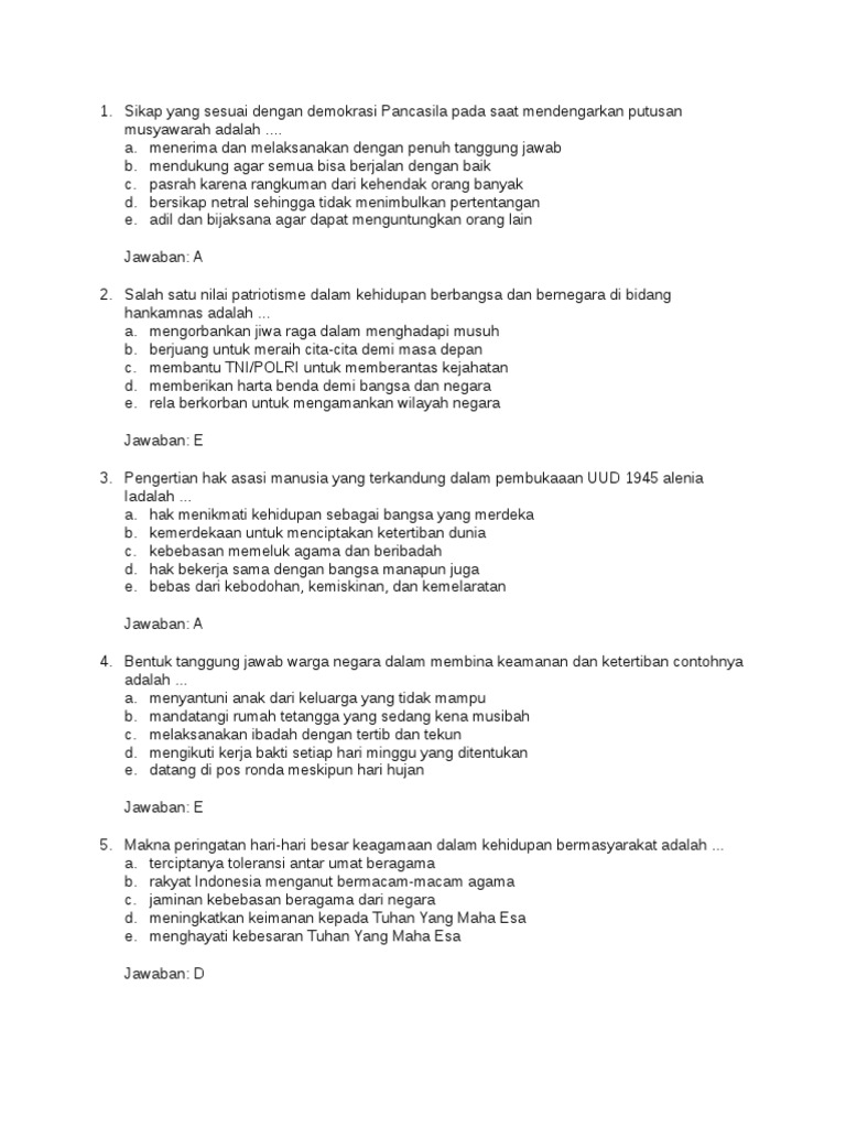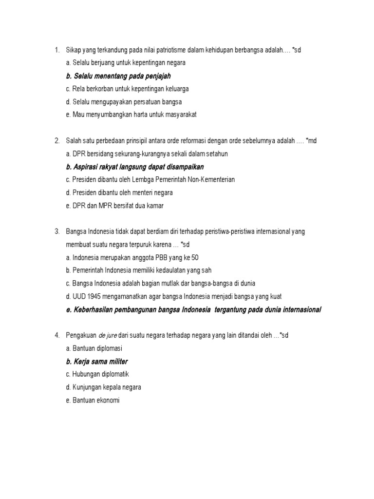 Soal PPKN : Bangsa dan Negara Kesatuan Republik Indonesia (NKRI …