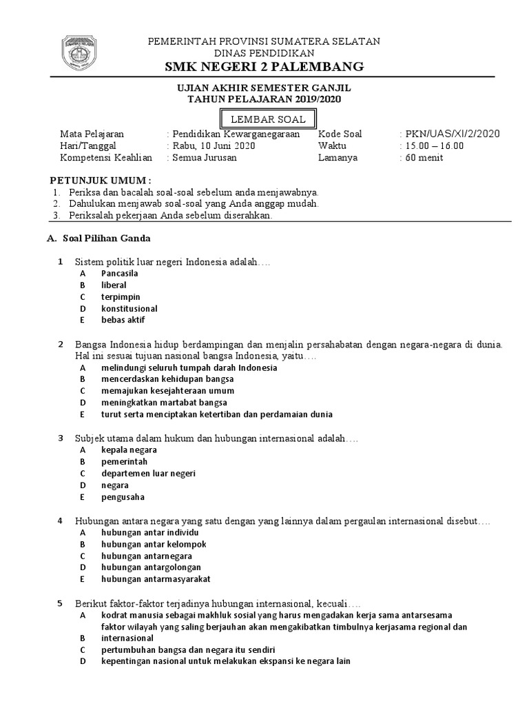 Smk Negeri 2 Palembang: Ujian Akhir Semester Ganjil TAHUN …