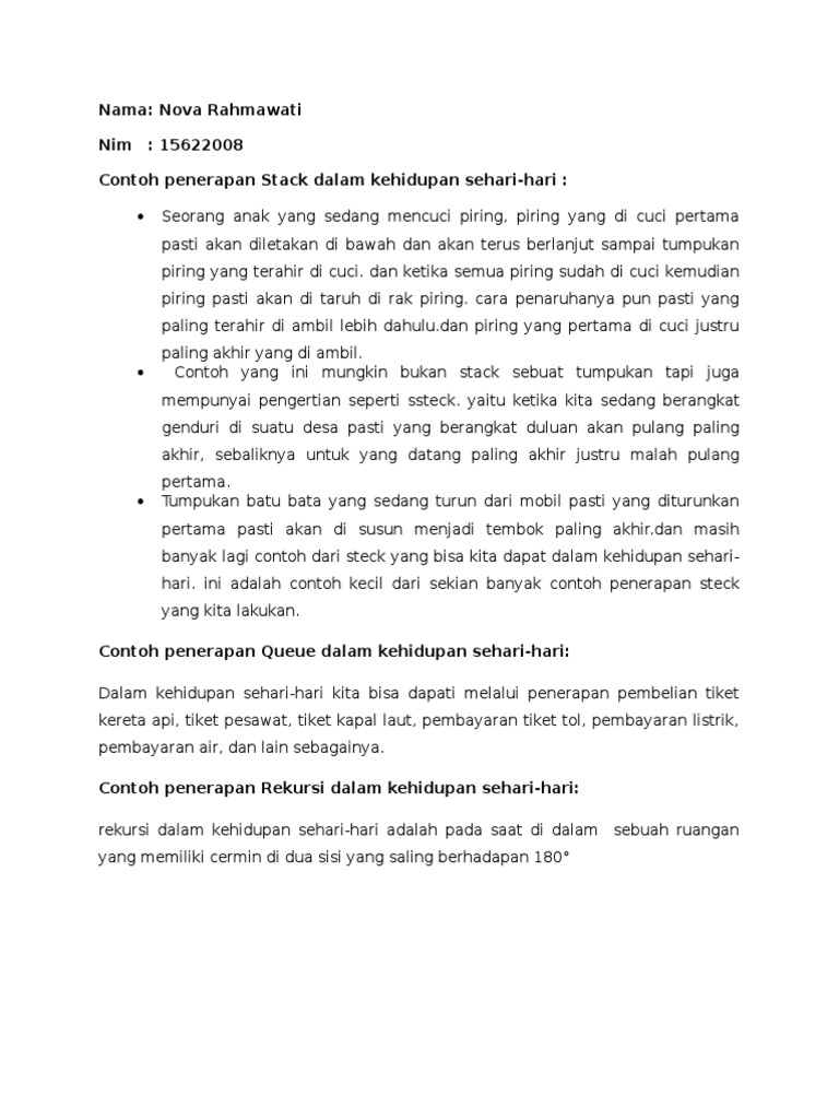 Contoh Penerapan Stack Dalam Kehidupan Sehari - Nova Rahmawati