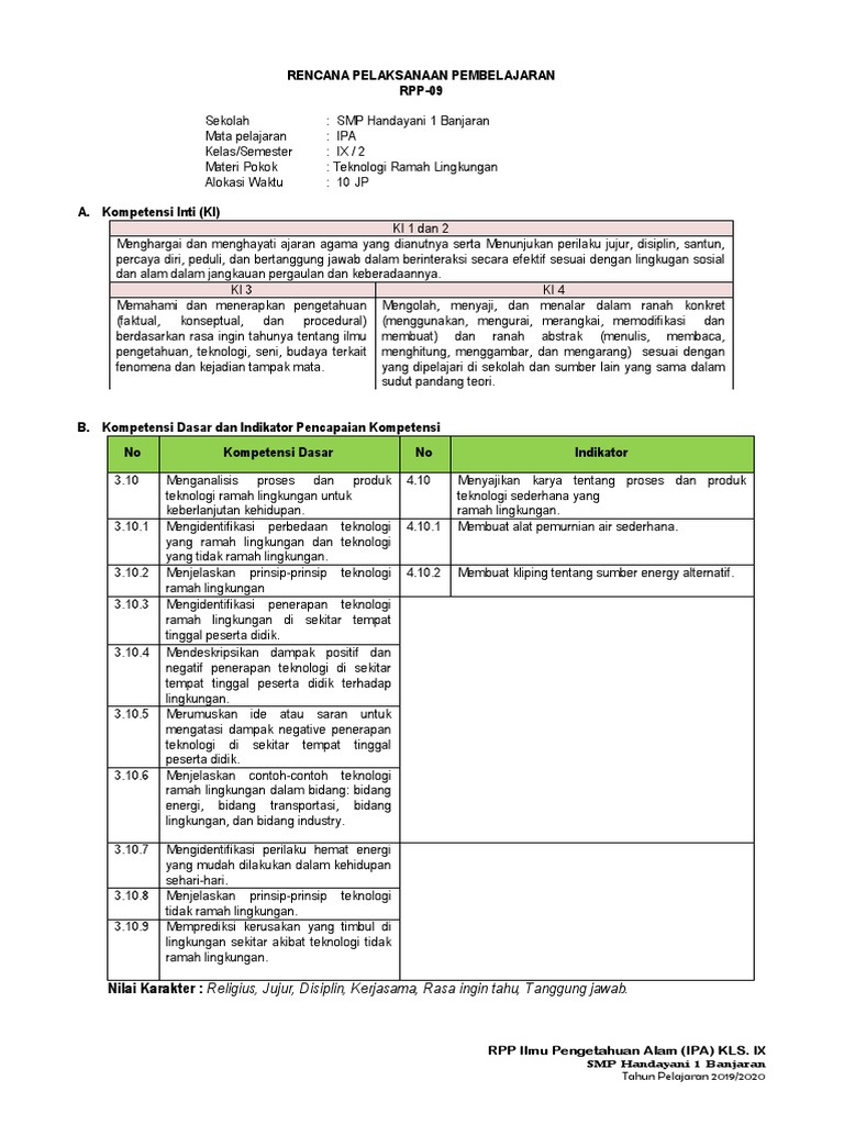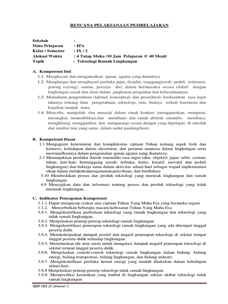 Rpp Teknologi Ramah Lingkungan