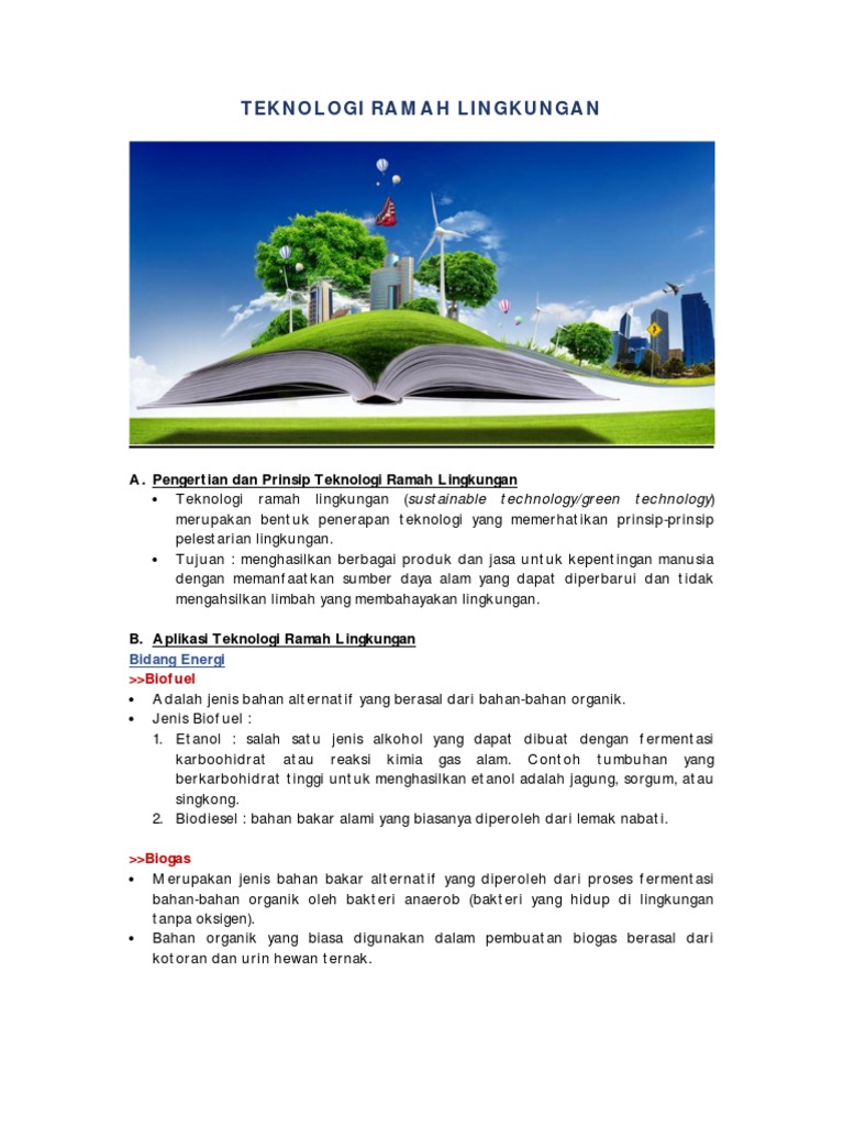 A. Pengertian dan Prinsip Teknologi Ramah Lingkungan