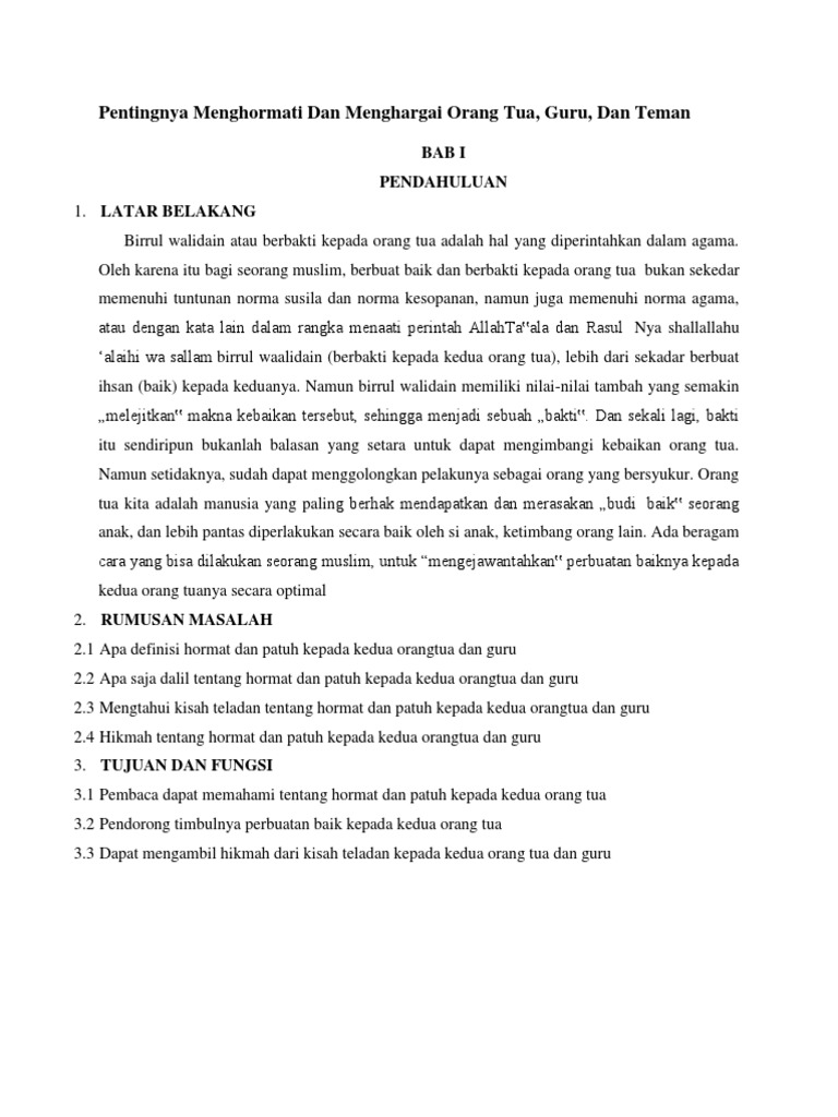 Makalah Hormat Dan Patuh Kepada Orang Tua Dan Guru