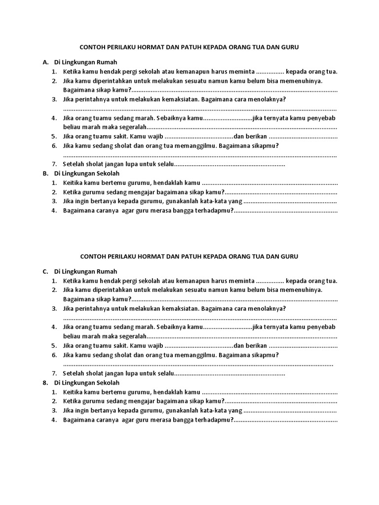 Contoh Perilaku Hormat Dan Patuh Kepada Orang Tua Dan Guru - Bagikan Contoh