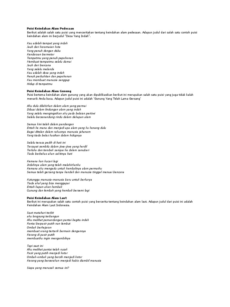 Kumpulan Contoh Puisi Bertema Keindahan Alam dan Lingkungan Hidup …