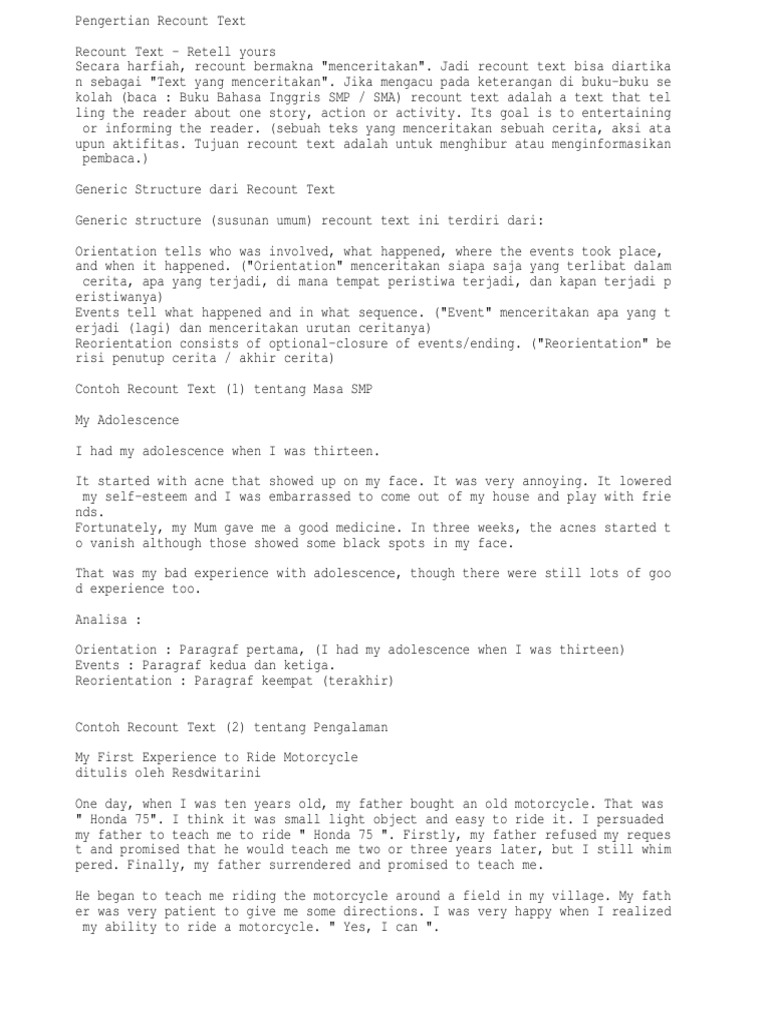 23 Contoh Recount Text Lengkap Beserta Artinya: Pengertian …
