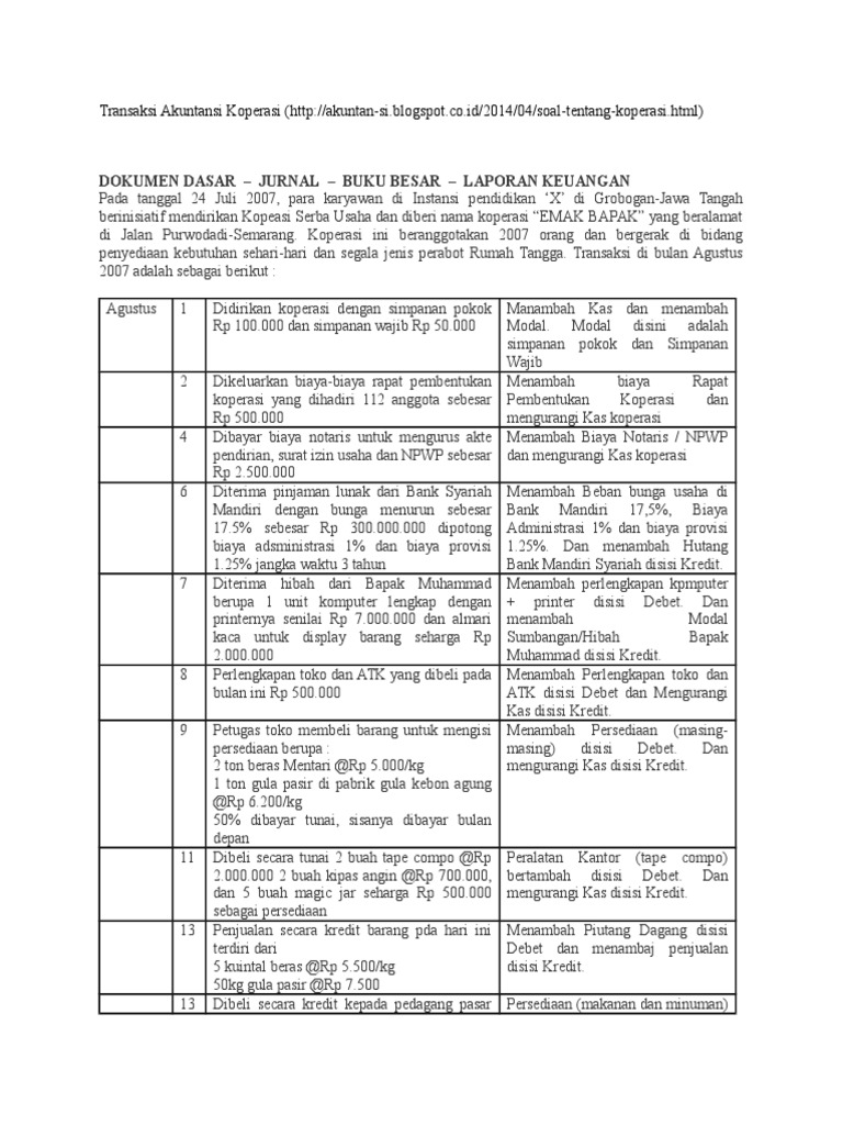 Contoh Soal Transaksi Koperasi Simpan Pinjam - Bagikan Contoh