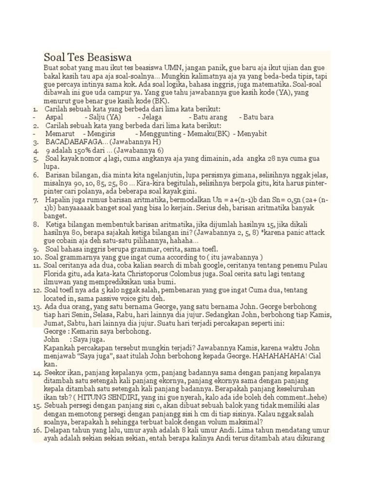 Kumpulan Contoh Soal Beasiswa Pdf Beserta Jawaban - paperslasopa