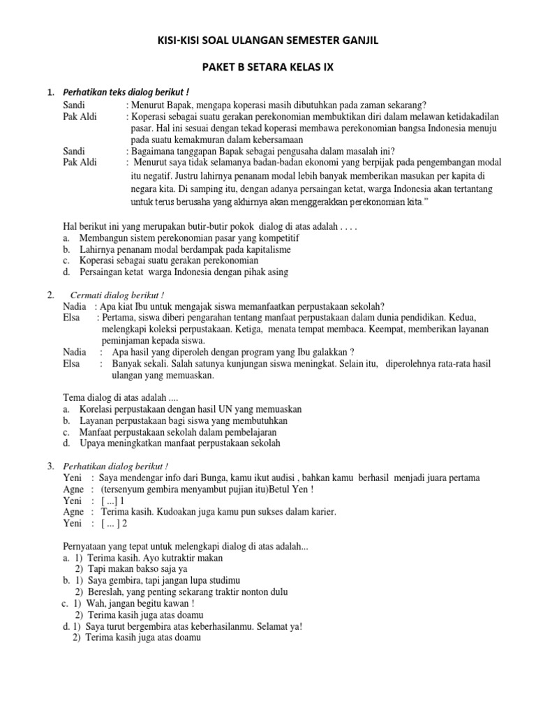 Kumpulan Soal Pilihan Ganda Bahasa Indonesia Kelas 9 ~ basindon
