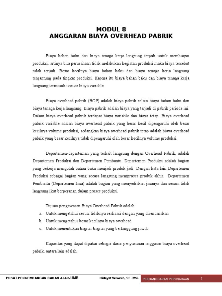 Contoh Soal Analisis Biaya Overhead Pabrik | My World