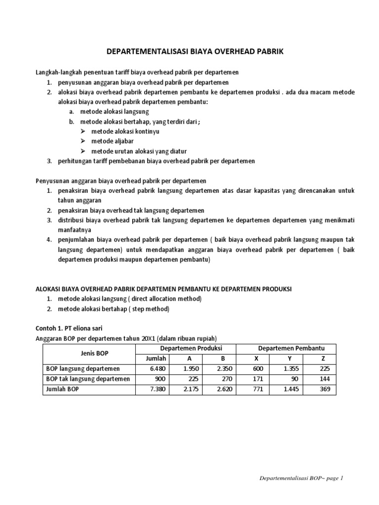 Contoh Soal dan Penyelesaian Departementalisasi BOP | hasdan …