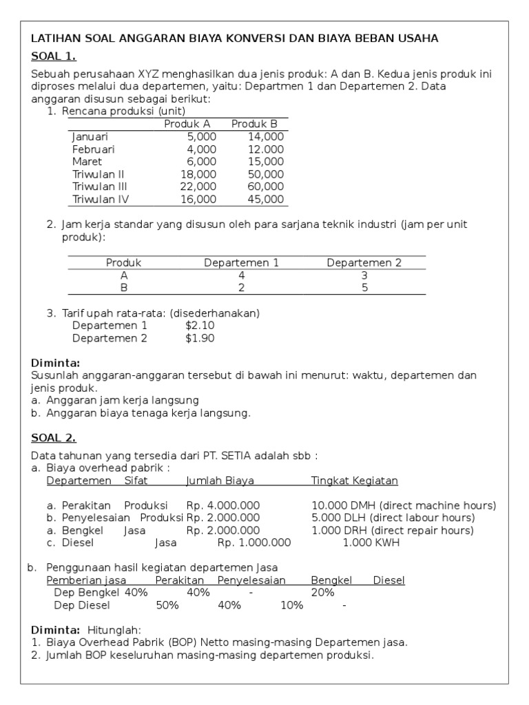 Contoh Soal Anggaran Biaya Overhead Pabrik - Contoh Soal Terbaru