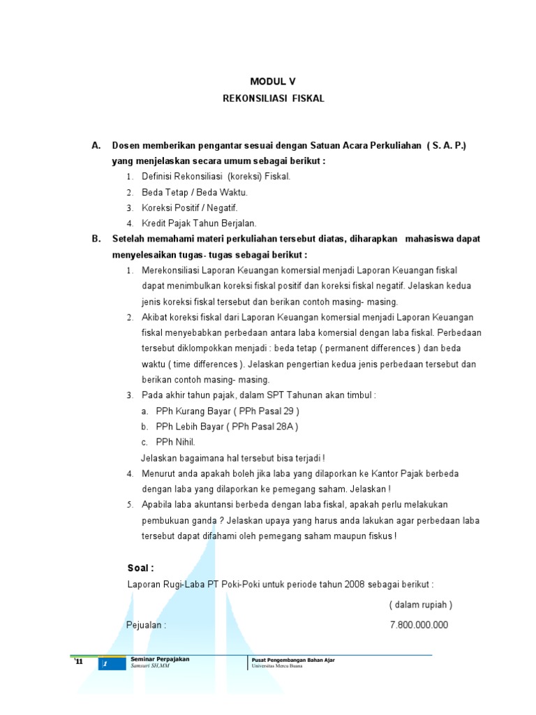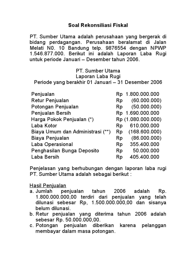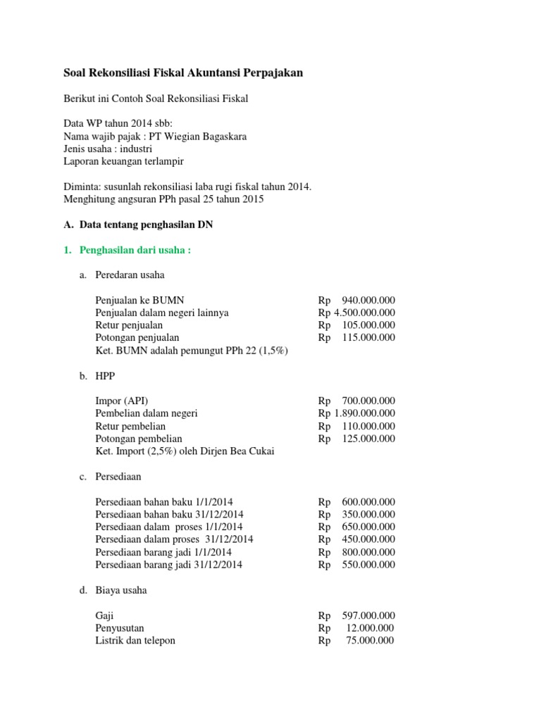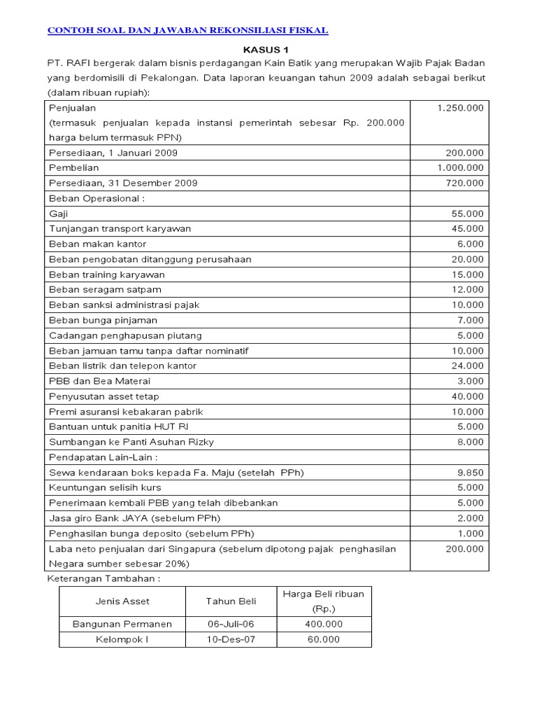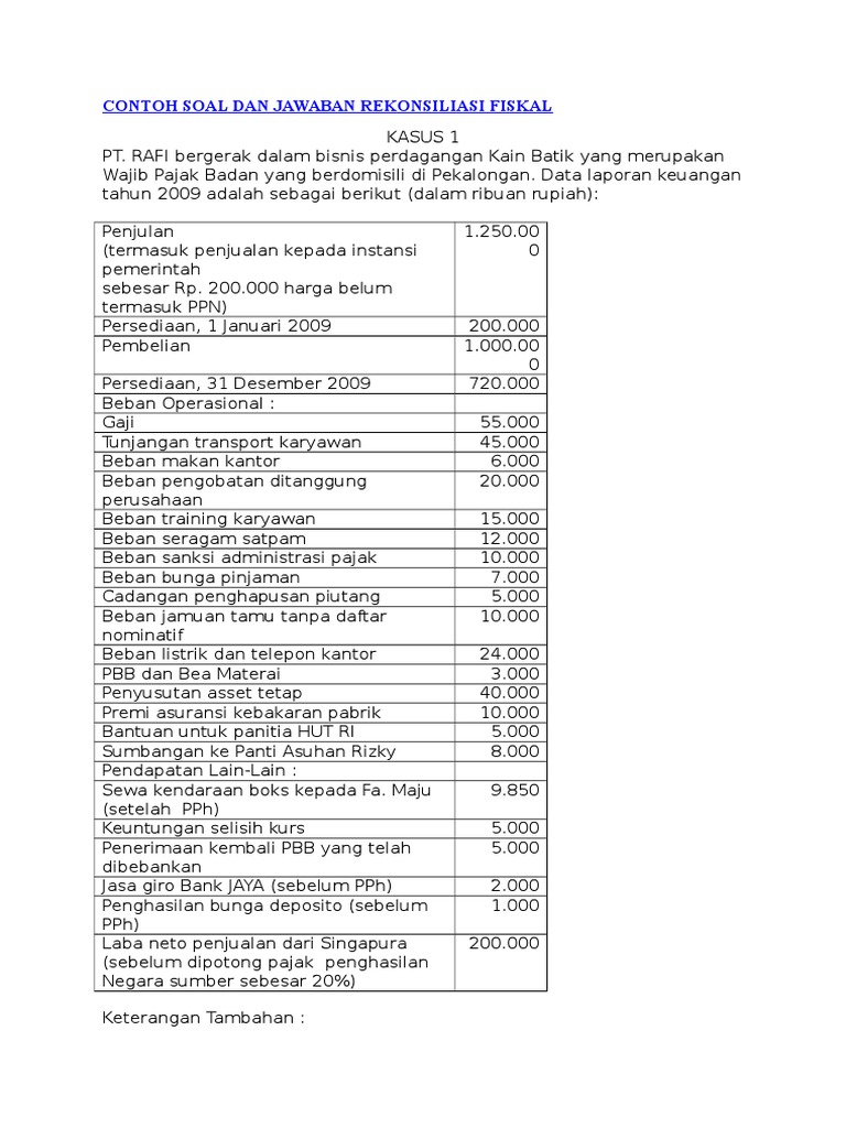 Contoh Soal Dan Jawaban Rekonsiliasi Fiskal Badan Pdf - Dapatkan …