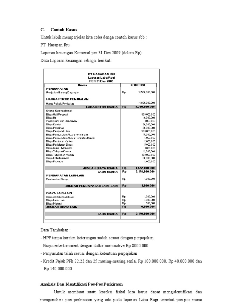 Contoh Soal Koreksi Fiskal Laba Rugi - Berbagi Contoh Soal