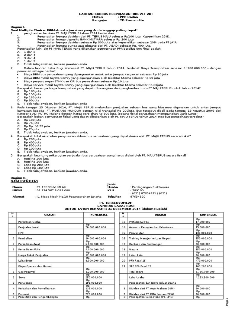 Soal Latihan PPh Badan