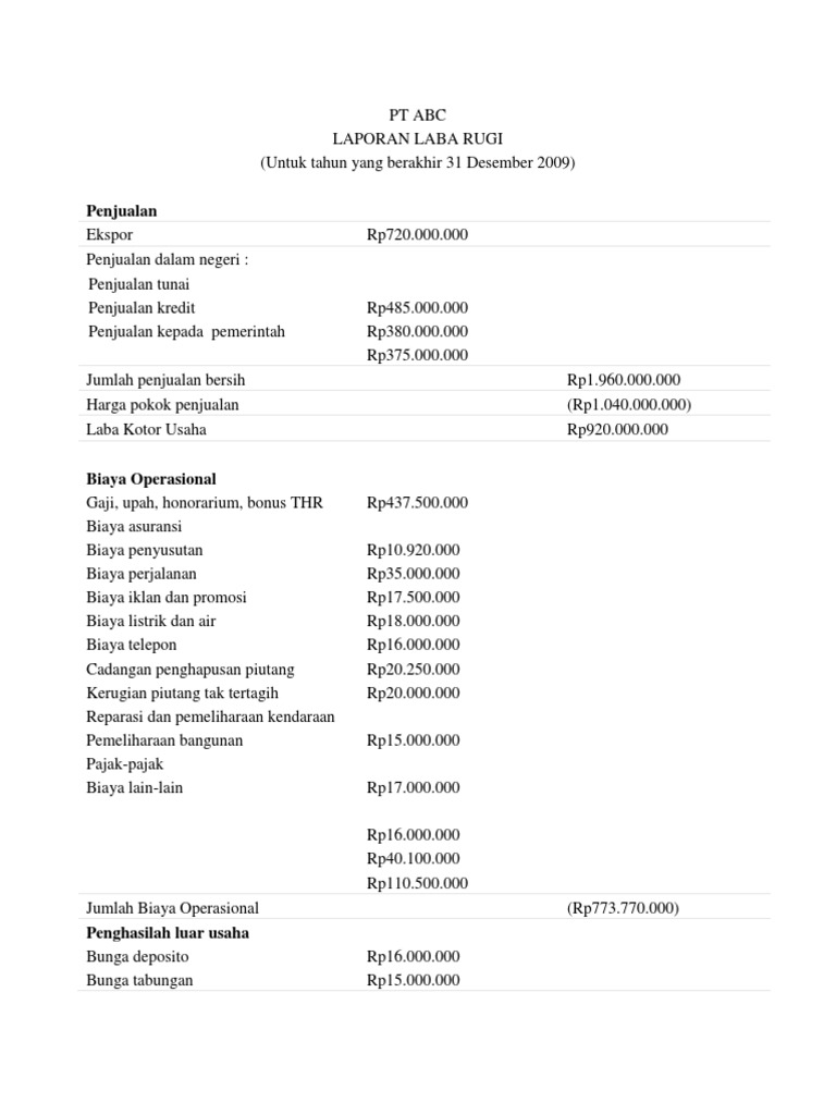 Contoh Soal Dan Jawaban Laporan Laba Rugi Fiskal - Seputar Laporan