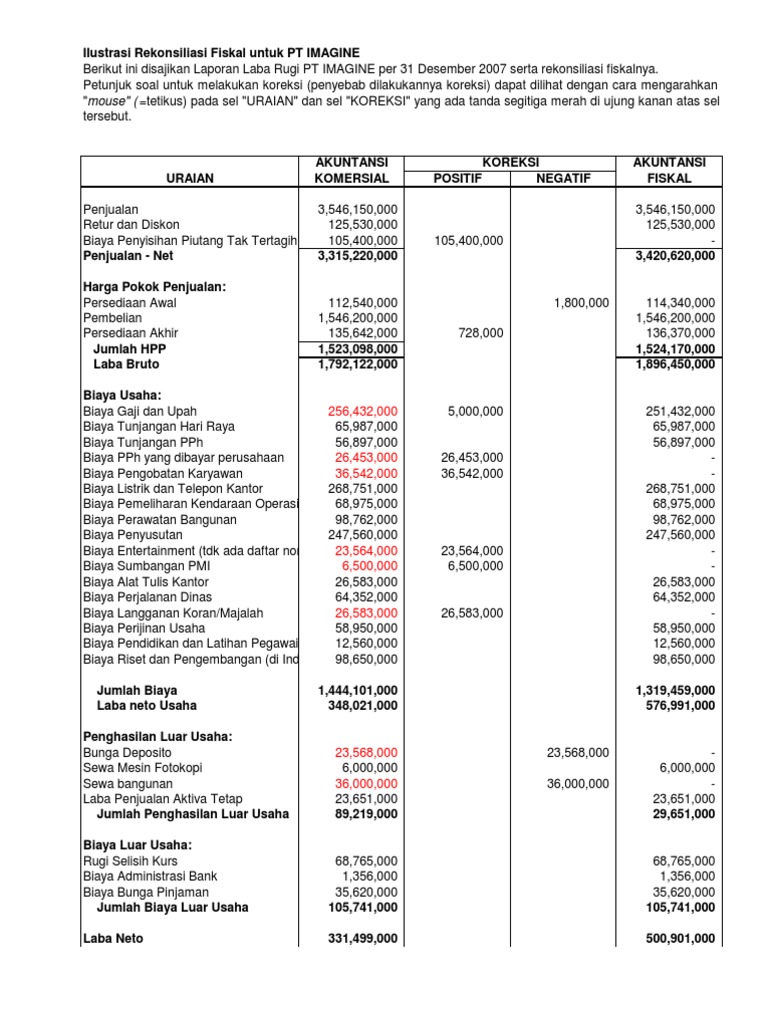 Contoh Soal Dan Jawaban Rekonsiliasi Fiskal - Guru Paud
