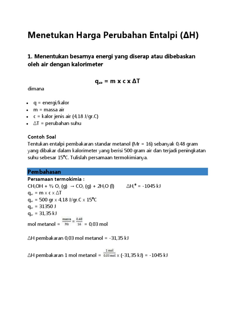 Penentuan Harga Perubahan Entalpi Lengkap Dengan Rumus