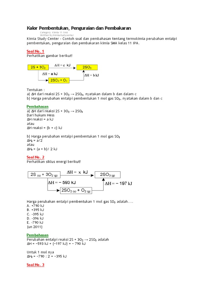 Soal Pembahasan Perubahan Entalpi Pembentukan Standar - gupak.com