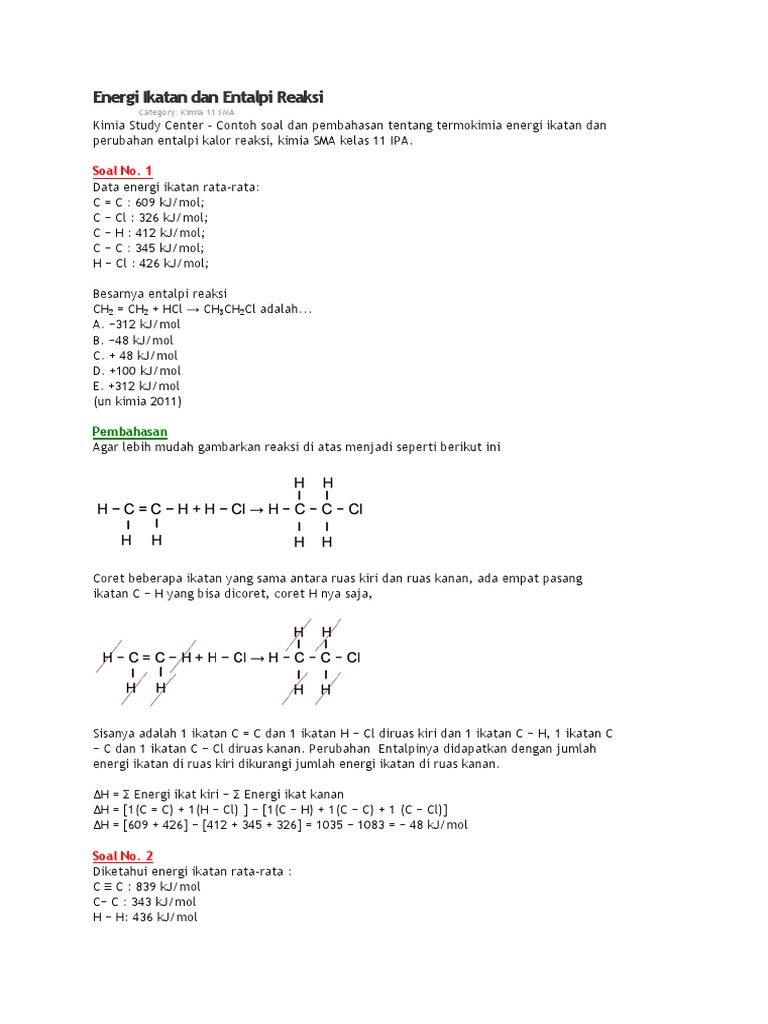 Contoh Soal Perubahan Entalpi Reaksi Dan Pembahasannya - Contoh Soal Terbaru