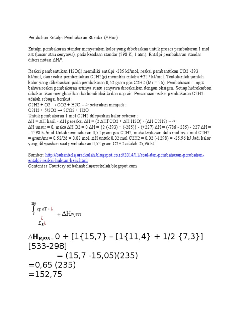 Soal Jawaban Perubahan Entalpi Pembakaran Standar - gupak.com