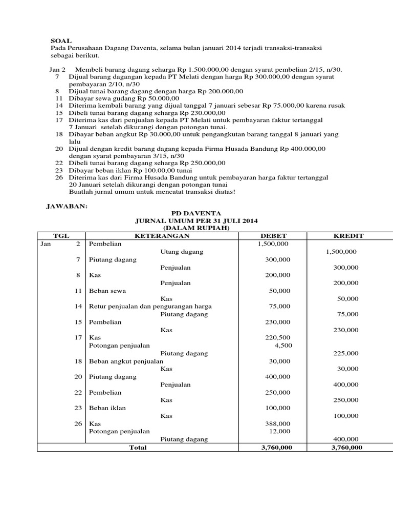 Contoh Soal Jurnal Umum Dan Jawabannya Perusahaan Dagang