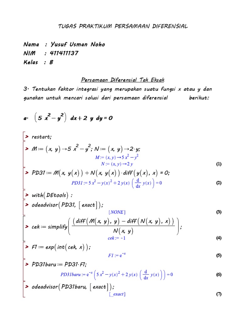DOC) PRAKTIKUM PERSAMAAN DIFERENSIAL BIASA MENGGUNAKAN MAPLE | Via …