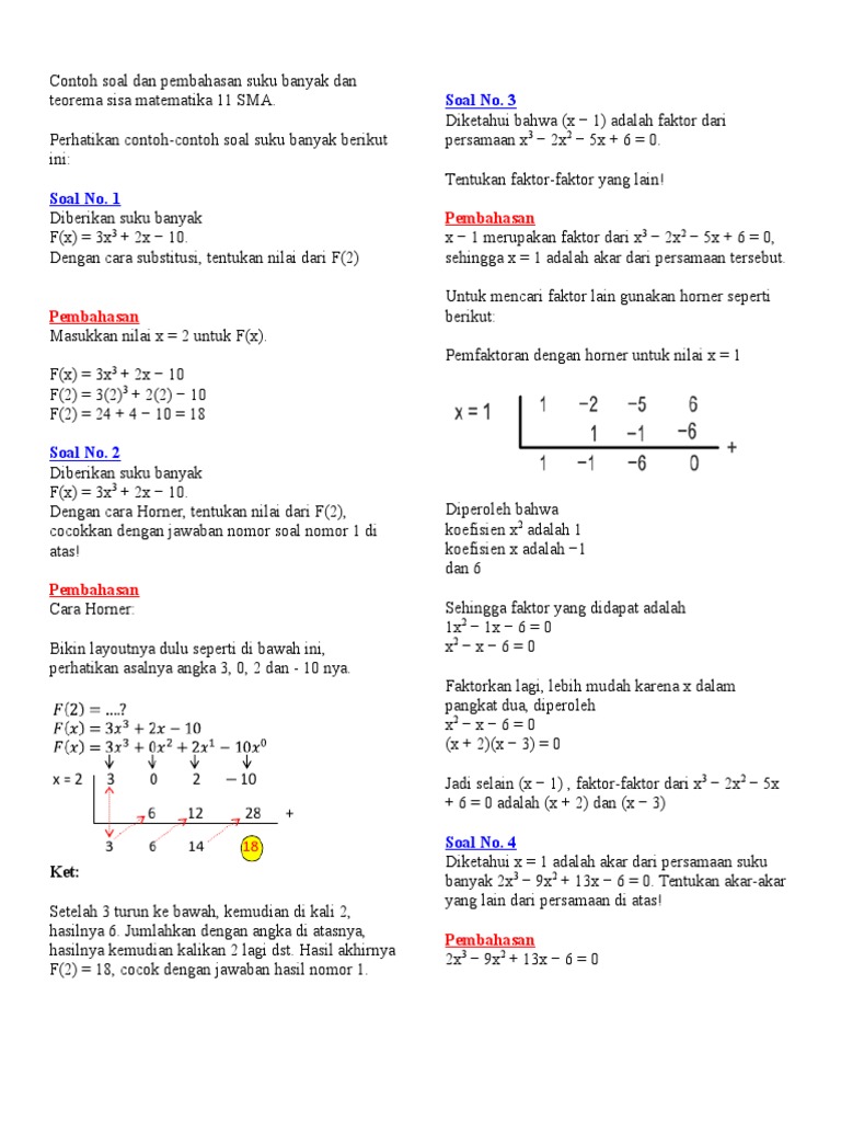 Contoh Soal Suku Banyak Polinomial Dan Jawaban Pembahasan - Cute766