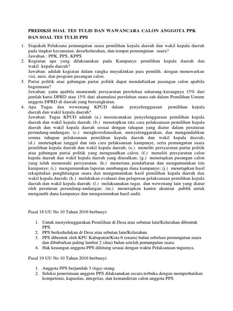 Prediksi Soal Tes Tulis dan Wawancara Calon Anggota PPK dan Soal …