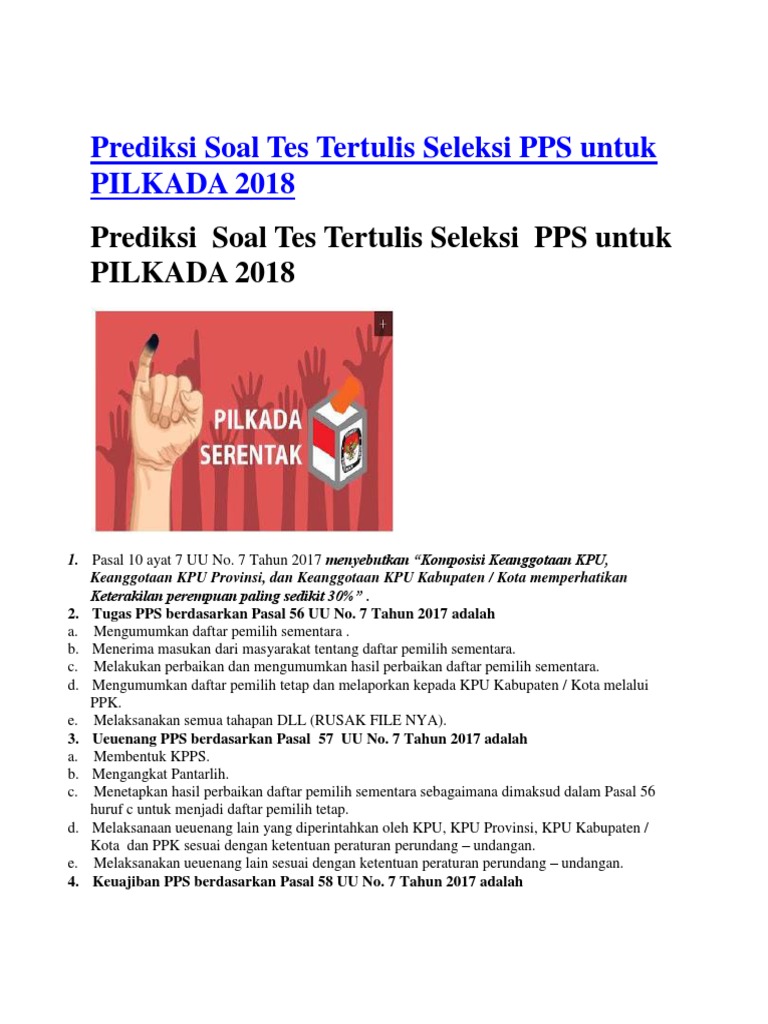Prediksi Soal Tes Tertulis Seleksi PPS Untuk PILKADA 2018