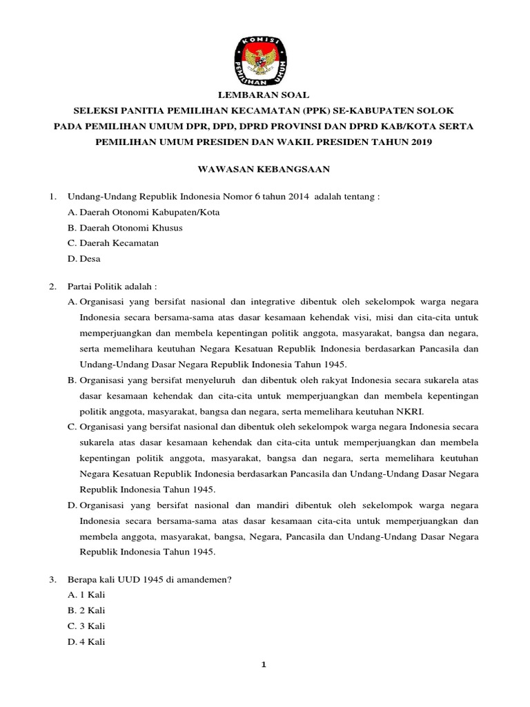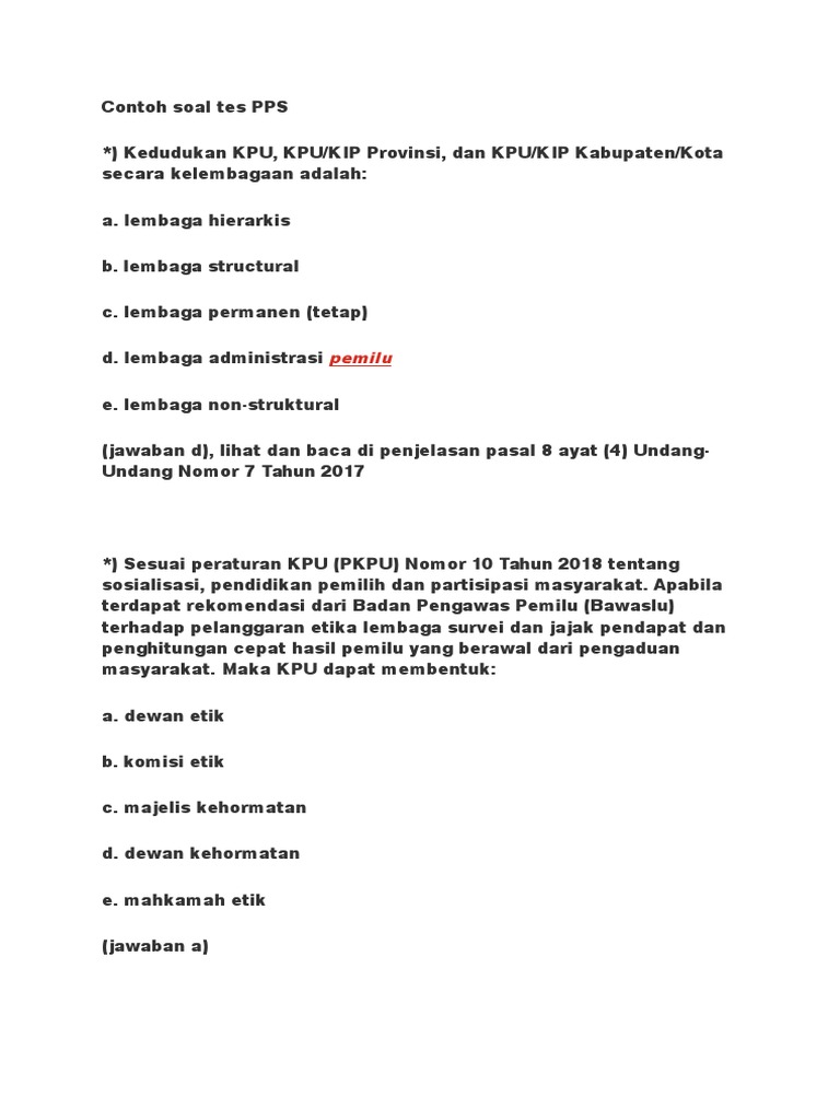 Contoh Soal Tes Tulis Kpps 2018 - Contoh Soal Terbaru