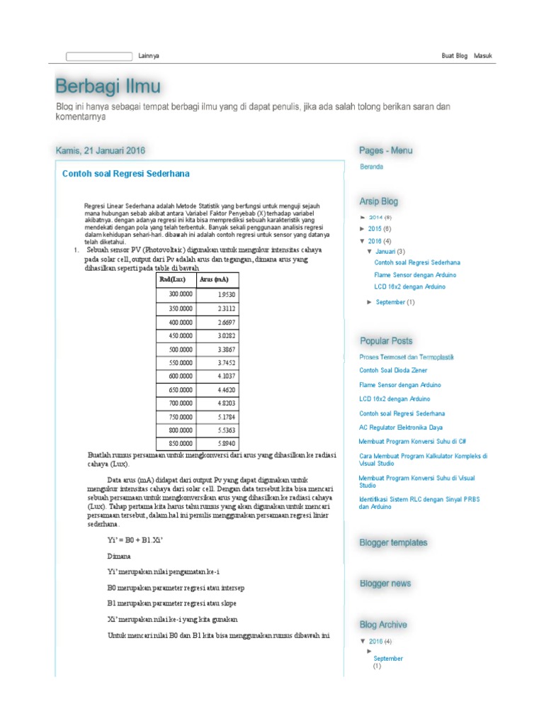 Contoh Soal Regresi Linear Sederhana | Contoh Soal Dan Materi …