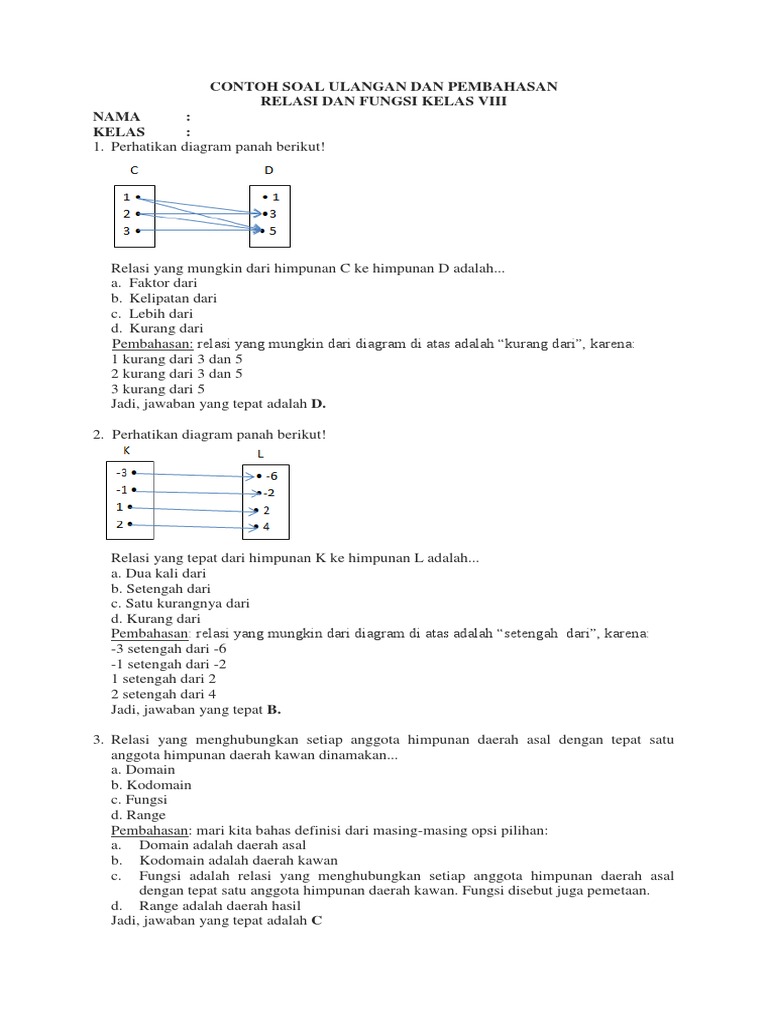 Contoh Soal Relasi Dan Fungsi Beserta Jawabannya Kelas 8 - Contoh …