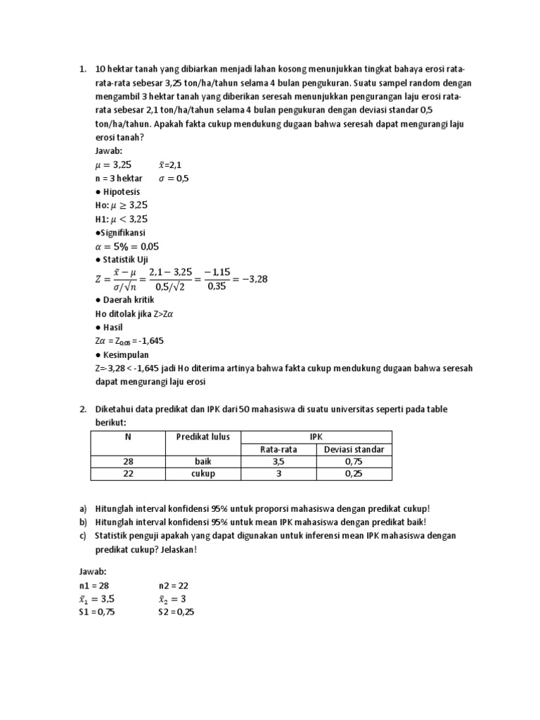 Contoh Soal Statistik Inferensial Dan Penyelesaiannya - Contoh …