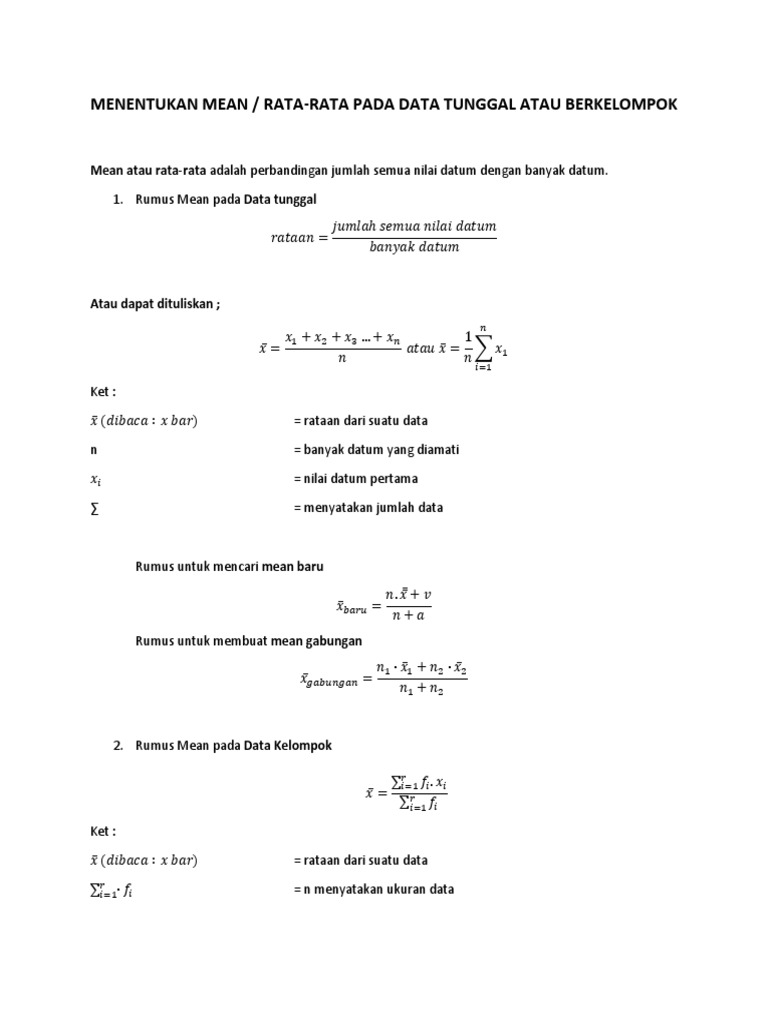 Soal Dan Pembahasan Menentukan Mean Pada Data Tunggal Atau Kelompok