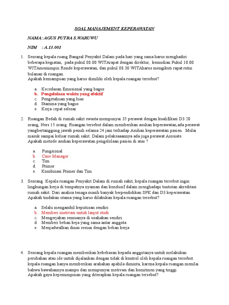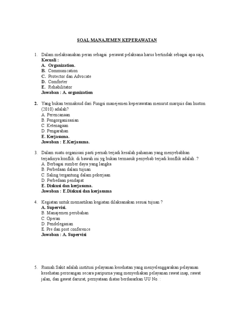 CONTOH SOAL UJI KOMPETENSI PERAWAT (manajemen keperawatan) 5 - Be …