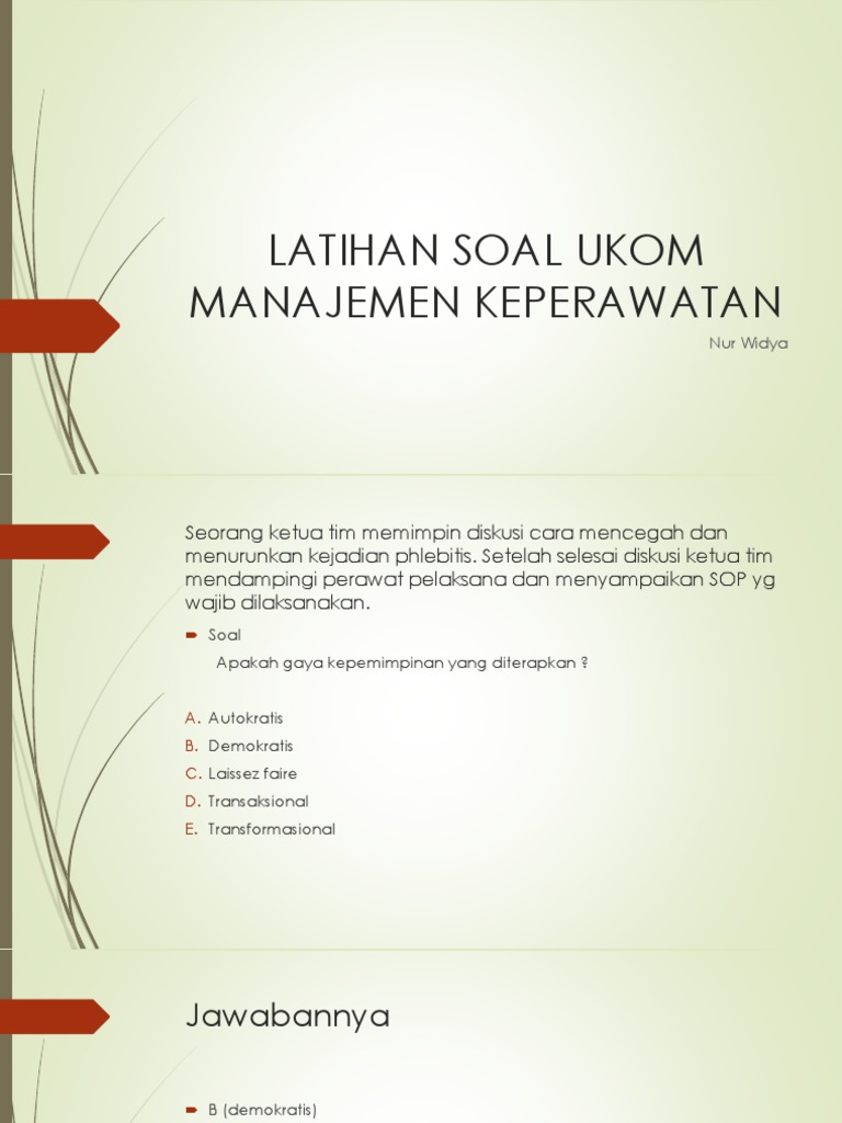 Kumpulan Contoh Soal Uji Kompetensi (UKOM) Manajemen Keperawatan …
