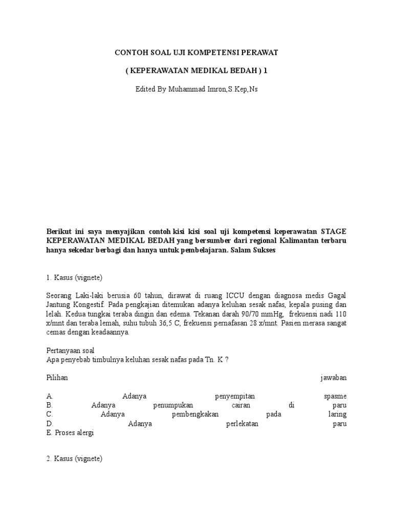 Contoh Soal Uji Kompetensi Keperawatan Beserta Kunci Jawaban Word …