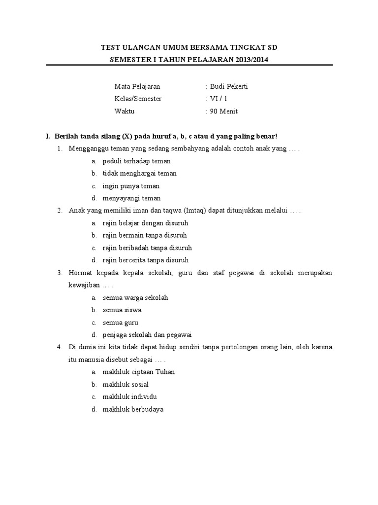 Contoh Soal Uts Kelas 6 Semester 1 Kurikulum 2013 - Bagikan Contoh