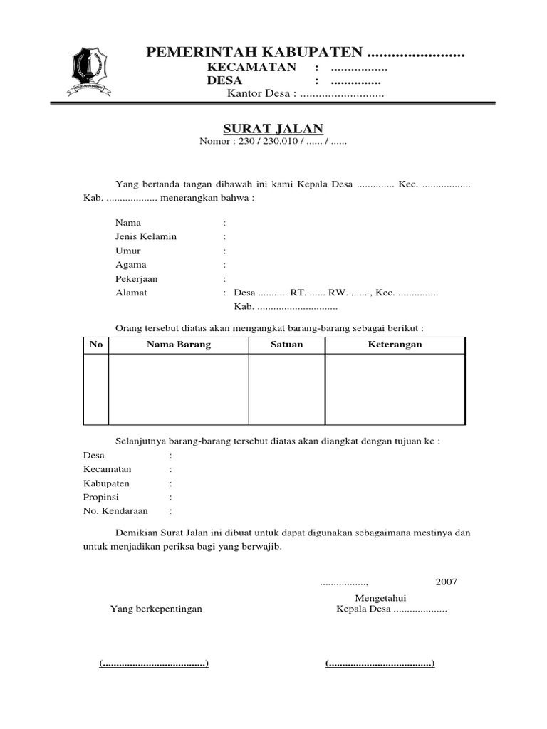 Download Gratis Contoh Surat Jalan Dari Desa