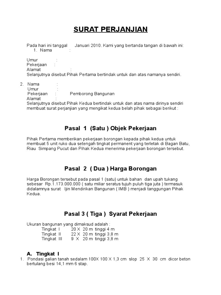 Contoh Surat Perjanjian Kerja Borongan Bangunan Doc - Kumpulan Surat Penting