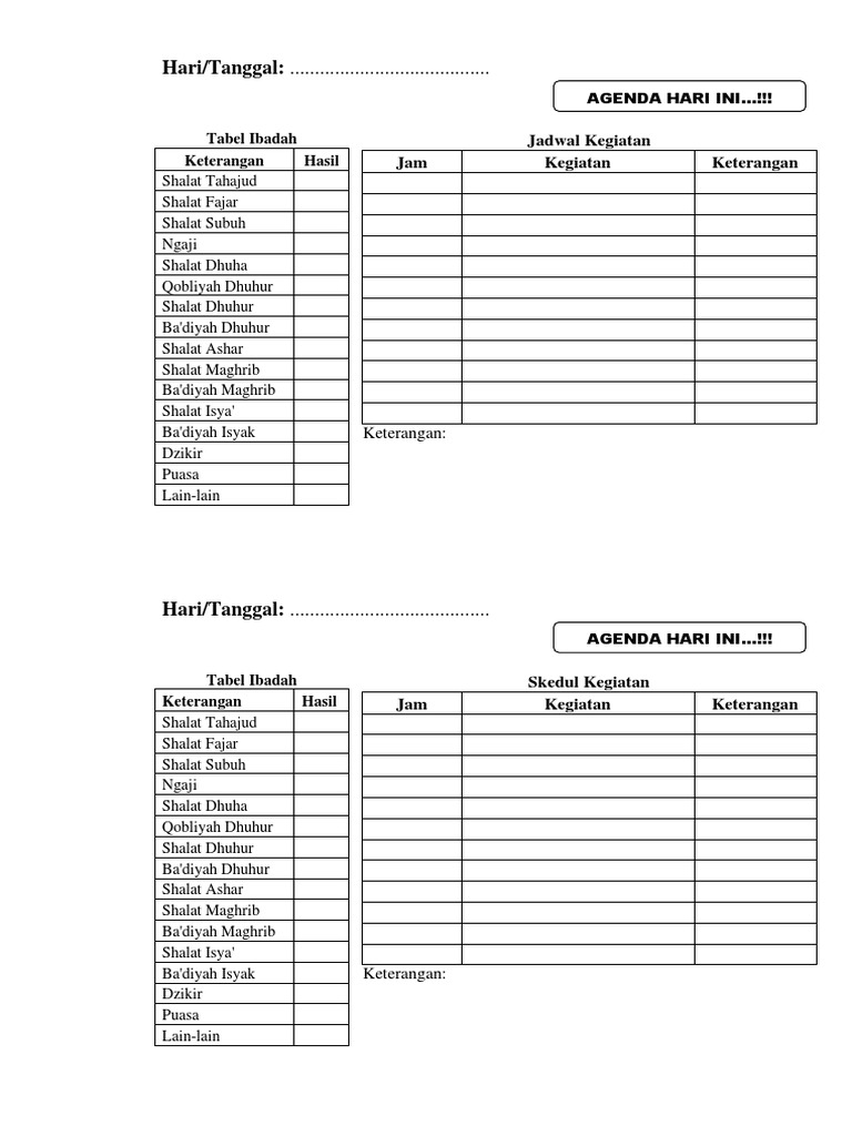 Agenda Harian Ibadah Tabel
