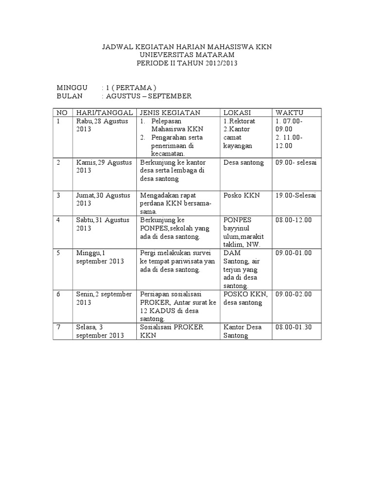 Jadwal Kegiatan Harian Mahasiswa Kkn