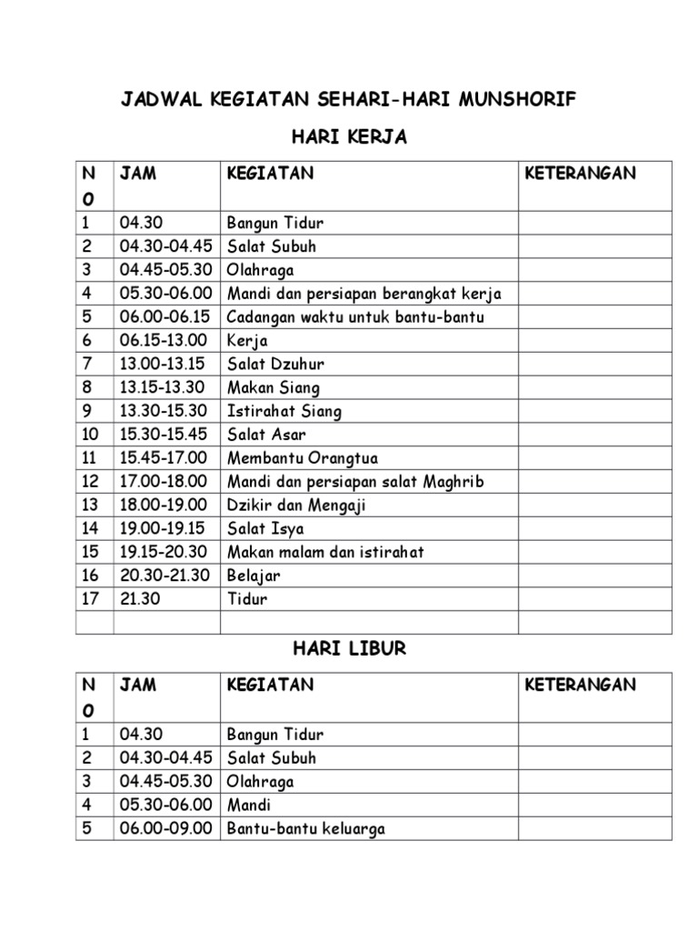 DOC) JADWAL KEGIATAN SEHARI | galang jiyu - Academia.edu