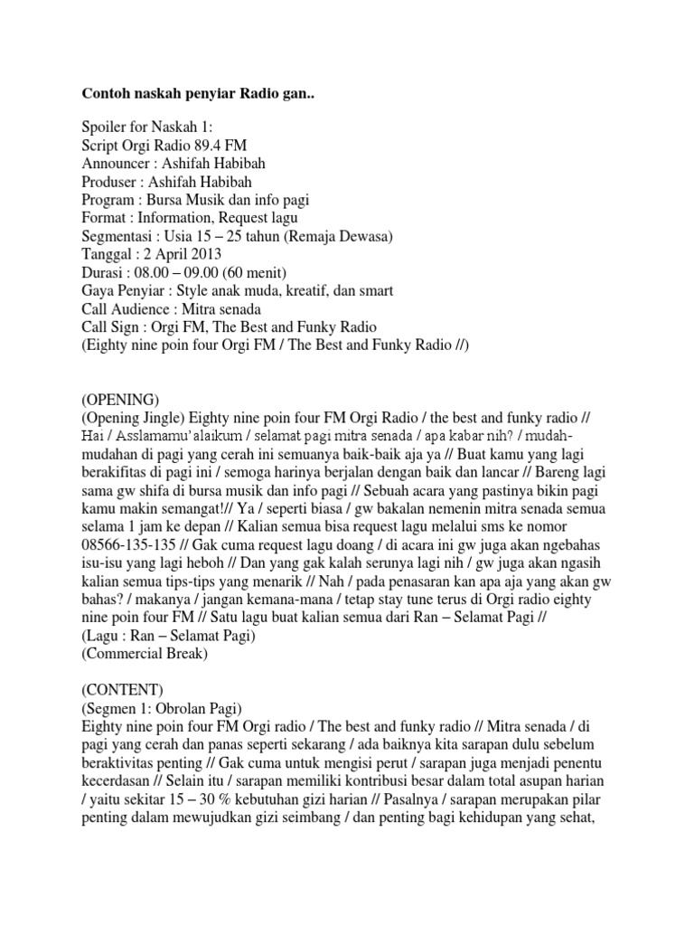 Contoh Naskah Siaran Radio Anak Muda Aneka Contoh - Cute766