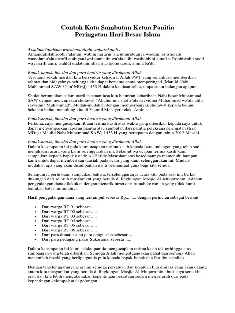 DOC) Contoh kata sambutan panita Mulid Nabi Muhammad SAW | Bayu …